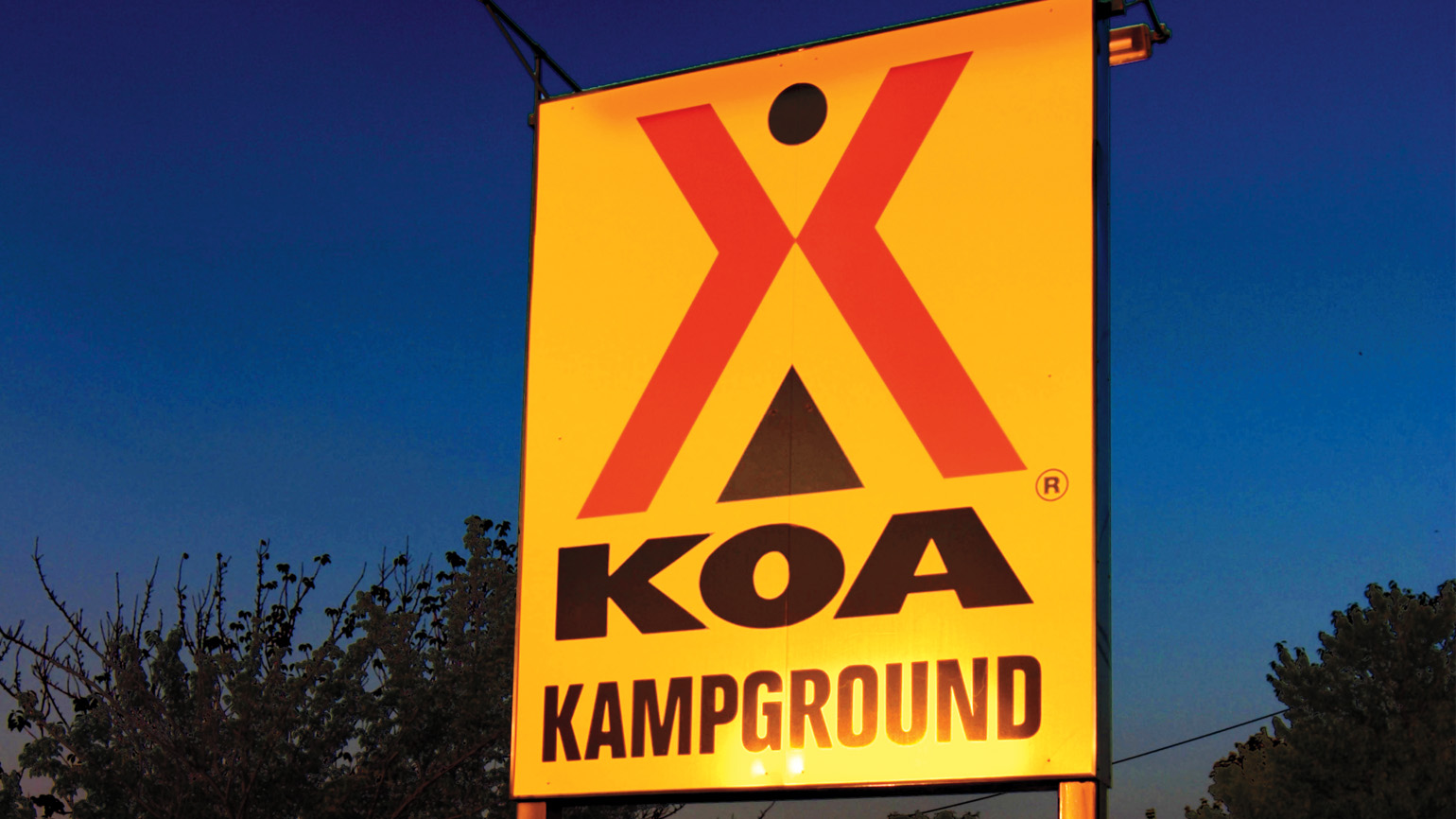 A few minutes later, I spotted a glow in the distance. A small cabin materialized right off the side of the highway. The gleam was emanating from a naked bulb, flickering on the porch. A sign out front read “KOA.” It was a Kampgrounds of America office. Even though it was late, there was a car in the parking lot. I turned in to stop and ask for directions.